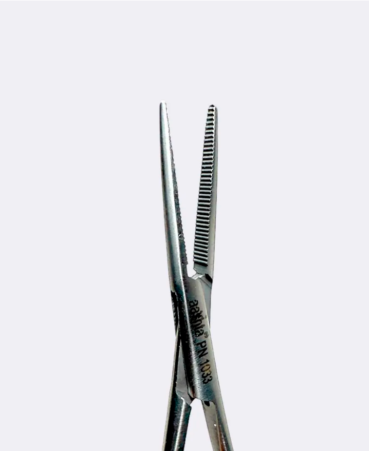 Instrumental fabricado en acero inoxidable de alta calidad, ergonómico, con cierre de cremallera que permite mantener la posición una vez cerrado. Parte activa estriada y engranaje con dientes para mantener la pinza fija sin necesidad de ejercer presión constante. Utilizadas para la hemostasia en tejidos delicados. Punta recta. Longitud de 10 cm.