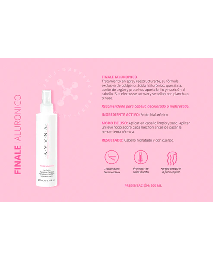 Spray reparador extremo, su fórmula exclusiva de colágeno, ácido hialurónico, queratina, aceite de argán y proteínas aporta brillo, hidratación y nutrición al cabello. Su efecto se maximiza si se sella con tenaza