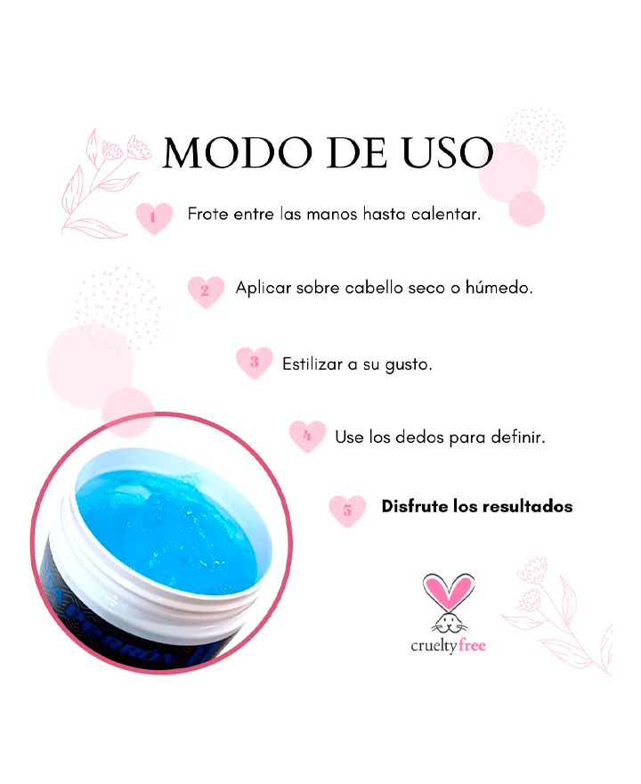 Frote entre las manos hasta calentar, aplicar sobre cabello seco o húmedo y estilizar a su gusto. Use los dedos para definir.