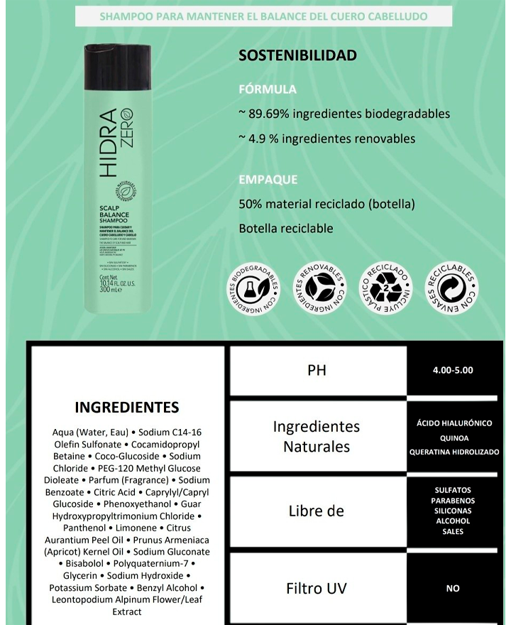 - Cuida y mantiene el balance del cuero cabelludo y cabello
