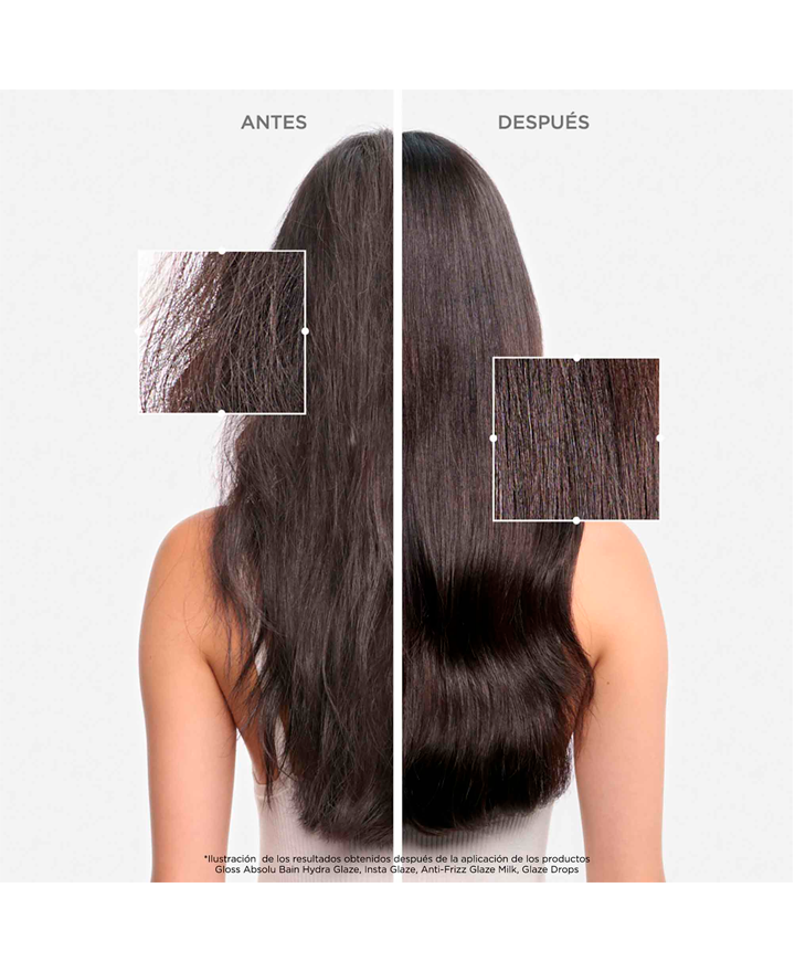 Su secreto reside en su textura cremosa que hidrata y rellena el cabello. Para obtener mejores resultados, comienza con Bain Hydra-Glaze y complementa tu rutina con la leche anti-frizz Glaze.