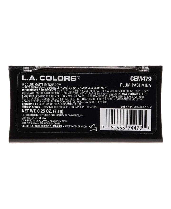 L.A. COLORS 5 SOMBRAS MATTE SOMBRAS PLUM PASHMINA  CEM479 Ver más grande