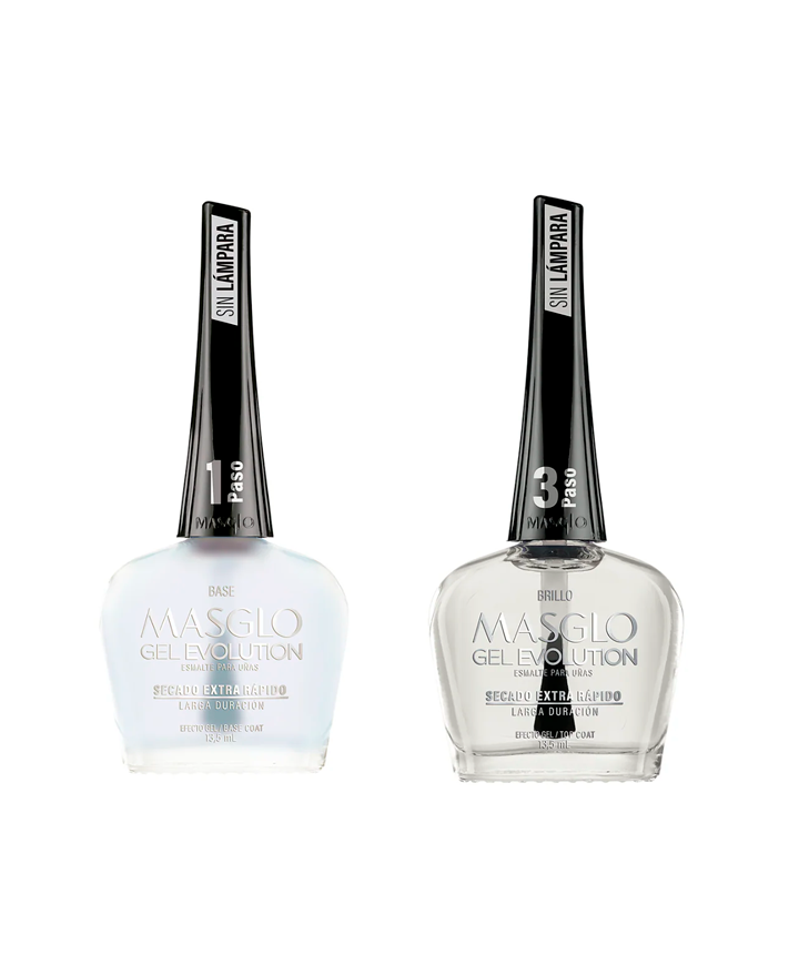 Este kit Base+Brillo MASGLO GEL EVOLUTION ofrece un efecto gel de secado rápido para un color intenso y duradero. Su formulación 13 FREE protege y cuida la uña, y su fácil remoción con el removedor tradicional Masglo sin acetona lo hace práctico y conveniente. ¡Hasta 12 días de duración sin necesidad de lampara UV/LED!