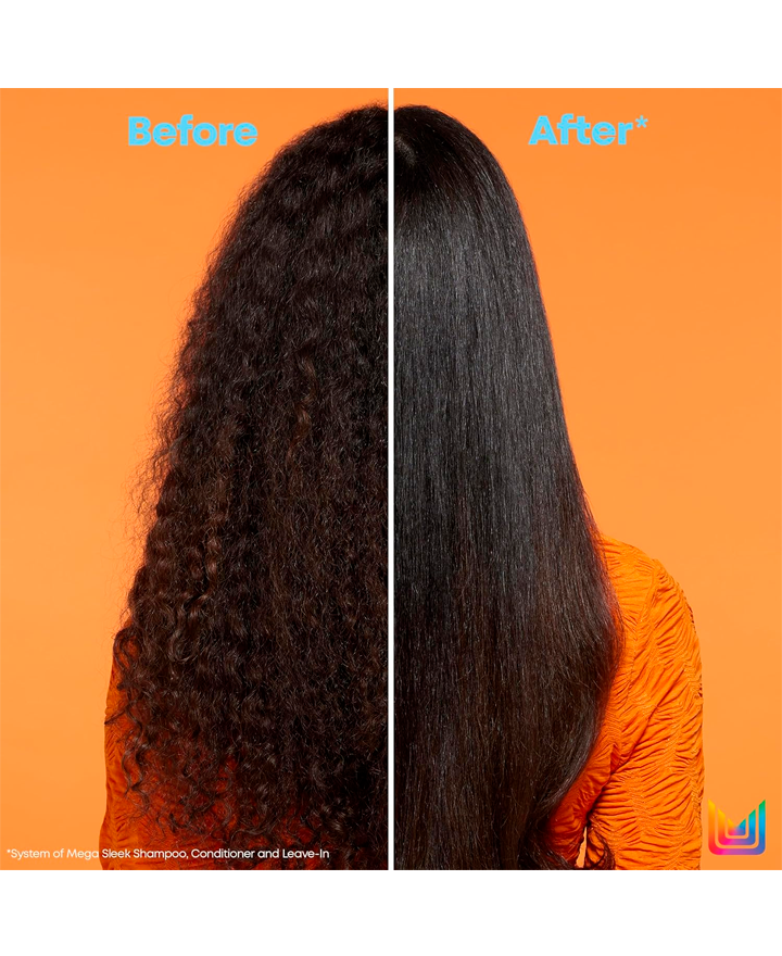 La crema sin enjuague Mega Sleek Blow Down con manteca de karité suavizante brinda protección contra el calor y se desliza fácilmente para un secado rápido. La crema de fijación media suaviza el cabello al instante y controla el frizz durante todo el día.