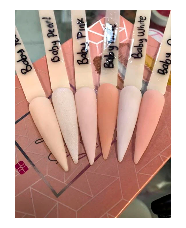 Polvo acrílico tono pink, auto nivelable, de secado medio de 30 a 45 segundos que permite moldear la uña esculpida y no se hace amarillo COMPONENTE PRINCIPAL Polietilmetracrilato