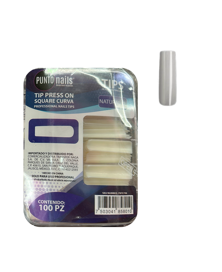 PUNTO NAILS TIP PRESS ON SQUARE CURVA C NATURAL XL 100 PZS. Ver más grande