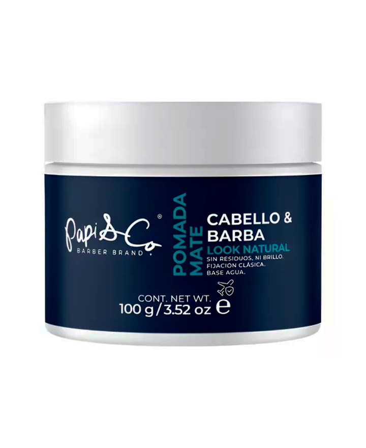 Es una pomada base agua con acabado mate y fijación clásica, ideal para quienes buscan un peinado estructurado pero sin brillo. Su textura ligera permite moldear tanto el cabello como la barba con definición y control, sin rigidez ni sensación pegajosa. Es perfecta para estilos relajados o cortes con textura que quieren verse naturales pero bien cuidados.