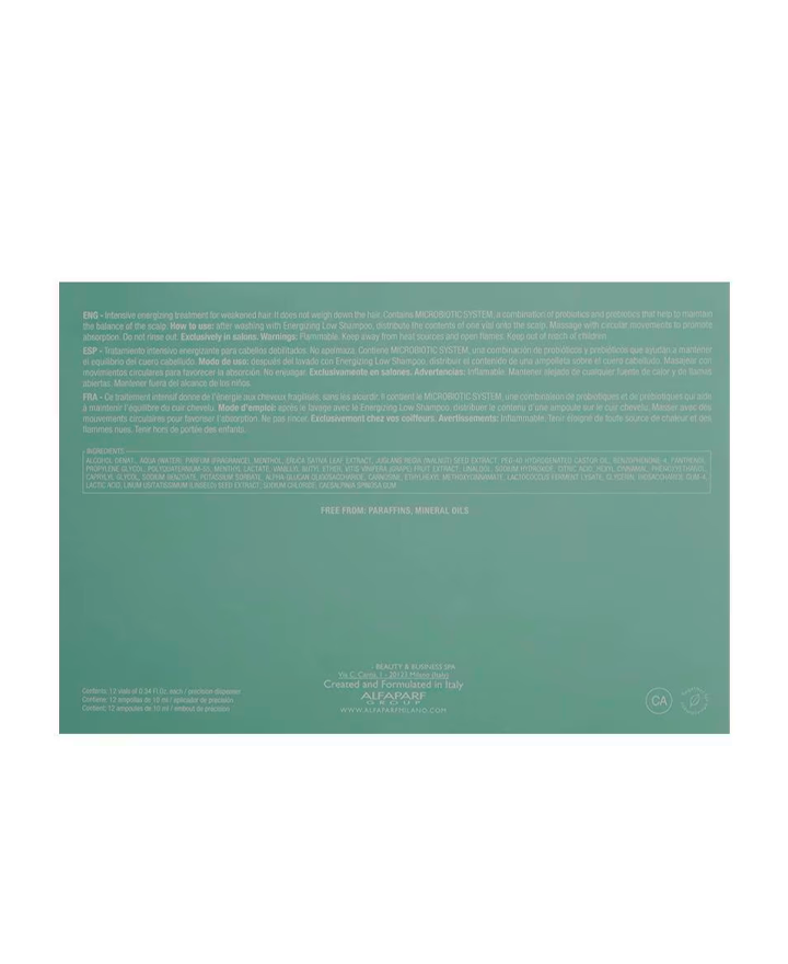 Aplicar 3 veces a la semana y durante 6-8 semanas el contenido de un vial sobre el cuero cabelludo después del champú energizing de la línea. Masajear para favorecer la absorción sin enjuagar. Se aconseja su utilización en primavera y otoño. Higienizar el dosificador antes de cada aplicación.