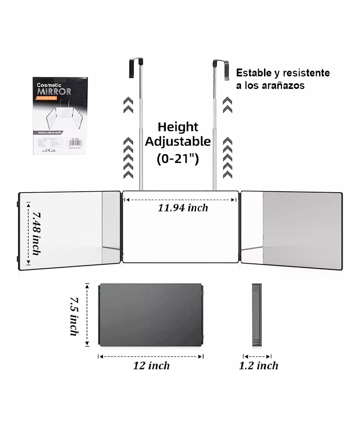 1. Espejo Plegable de 360 Grados: Espejo de peluquería para corte de cabello es un diseño triple que es útil para eliminar los puntos ciegos. Ahorra tiempo y completa el aspecto perfecto.