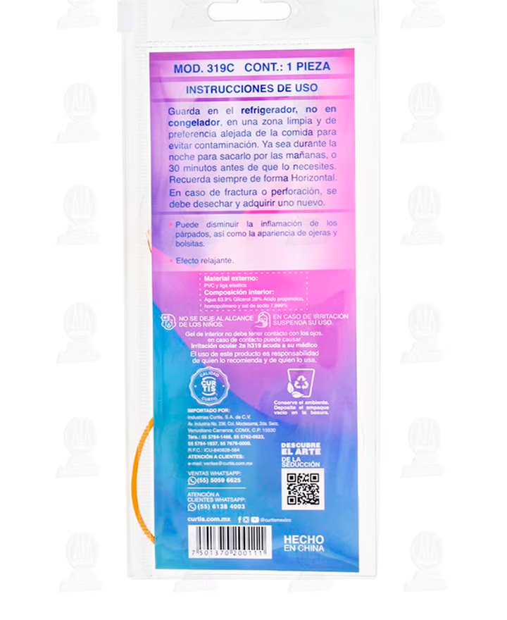 Este antifaz sirve como compresa fría o caliente que ayuda a reducir la inflamación en los ojos y la coloración oscura bajo los mismos. Es útil para aliviar migrañas y para relajarse después de un día extenuante. Contribuye a disminuir la inflamación por falta de sueño y revitaliza la piel con su uso diario.