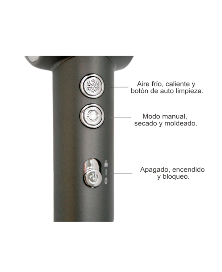 - Cuenta con un generador de iones negativos para cuidar tu cabello del maltrato y mantenerlo sin frizz.