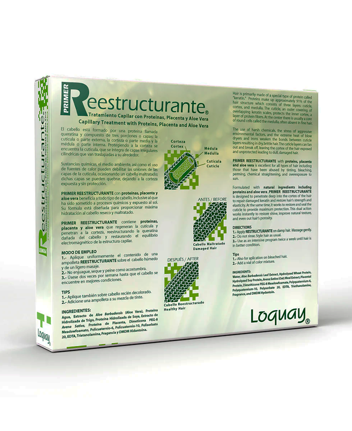 Restauran la queratina dañada del cabello, mejorando su textura, porosidad y elasticidad. El Aloe Vera hidrata el cabello reseco y maltratado. Ideal para preparar el cabello antes de procesos químicos y durante la aplicación del tinte.
