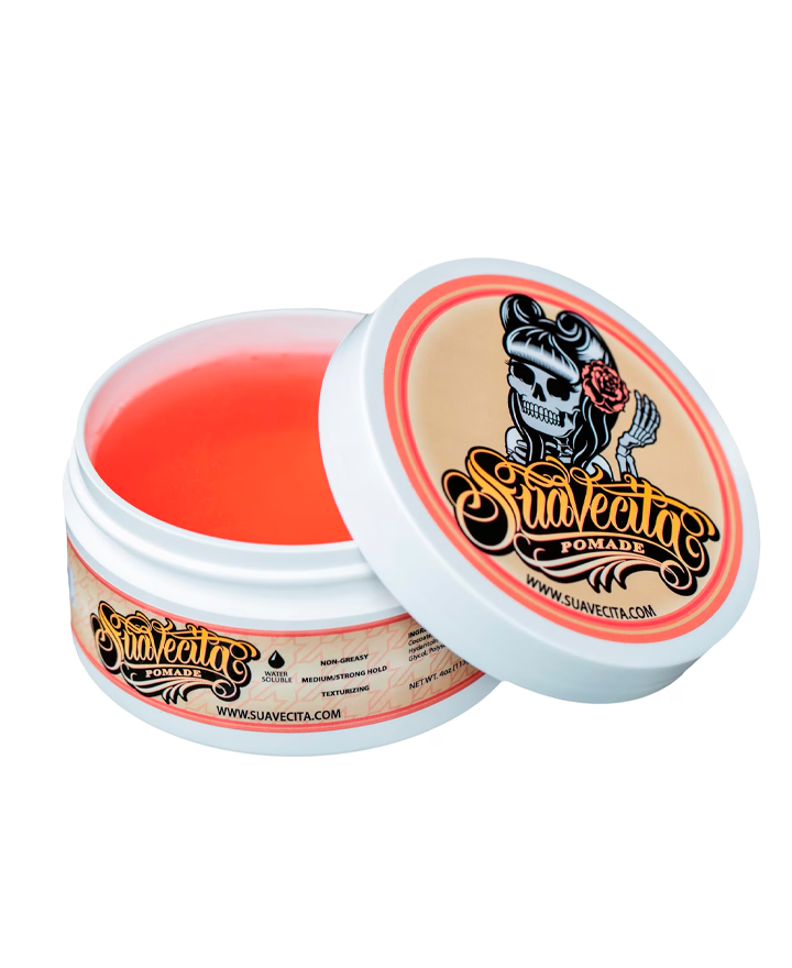 Pomada Suavecita, inspirada en nuestra Pomada Suavecito Original, dirigida específicamente a las mujeres. Se lava con agua solamente sin dejar residuo alguno. No contiene químicos agresivos, y su aroma es floral con suaves notas de sandía. Suavecita está diseñado para ser versátil en la elaboración de las siguientes tareas: