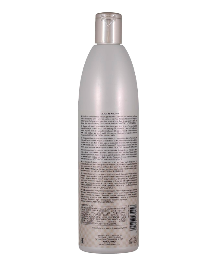 Modo de uso: Aplica una cantidad adecuada de Salone Glorious - Shampoo sobre el cabello mojado y masajea suavemente el cuero cabelludo hasta obtener espuma. Enjuaga abundantemente con agua tibia y repite si es necesario. Para obtener mejores resultados, continúa con el acondicionador y los productos complementarios de la línea Salone Glorious.