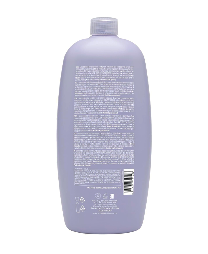 Limpia delicadamente alisando la fibra capilar, para un cabello liso sin efecto crespo. Delicado, sin sulfatos.