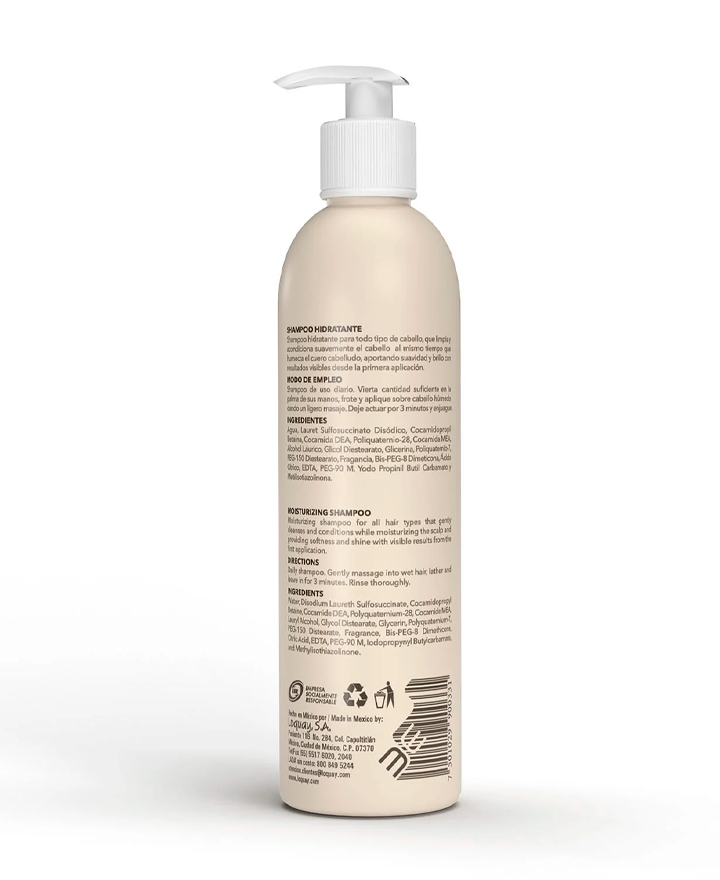 Shampoo hidratante para todo tipo de cabello, que limpia y acondiciona suavemente el cabello al mismo tiempo que humecta el cuero cabelludo, aportando suavidad y brillo con resultados visibles desde la primera aplicación.