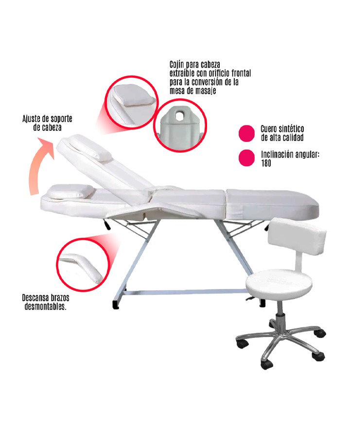 Silla Camilla Spa Masaje Cama Tatoo Faciales + Banco Con Respaldo Características: