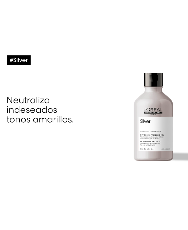 L'Oréal Professionnel Série Expert Silver Shampoo 750ml es un champú desarrollado para neutralizar los matices cobrizos en el cabello blanco y gris natural o aclarado.